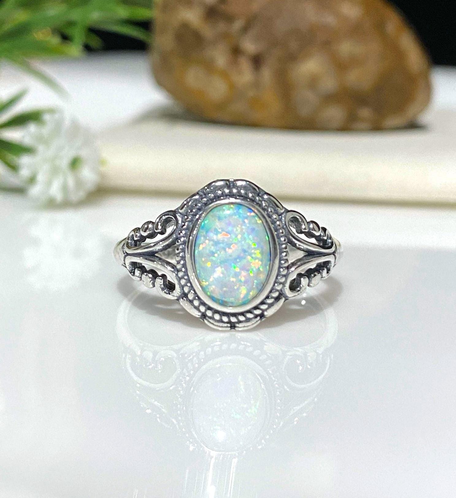 Vintage Sterling Silver White Opal Filigree Ring - Size 7