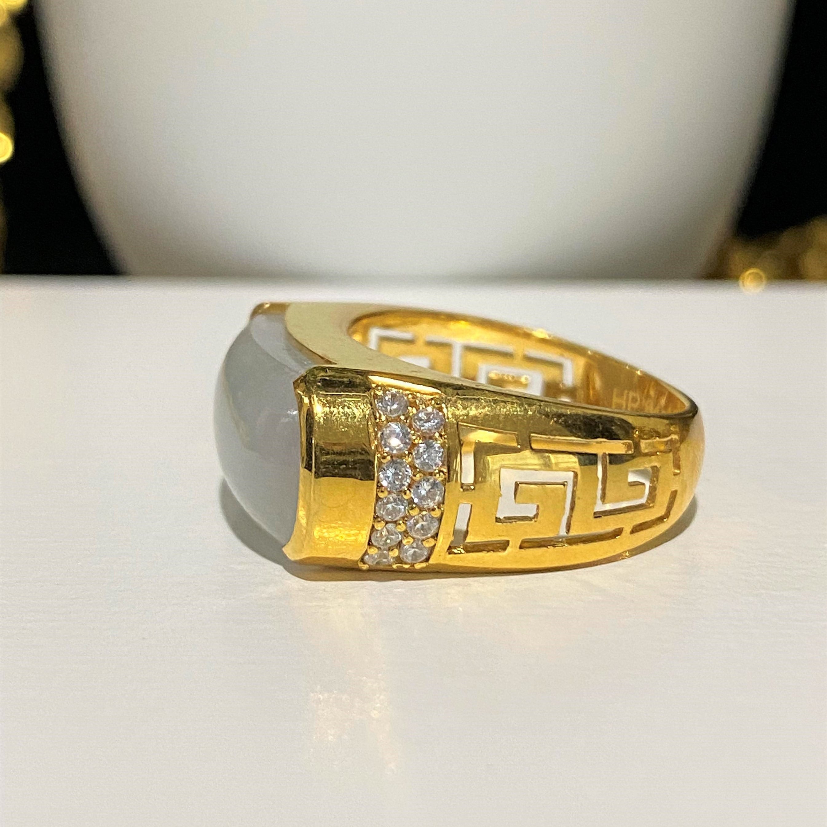 Vintage 18K Solid Yellow Gold Light Lavender Jadeite Jade White Topaz Ring Size 7