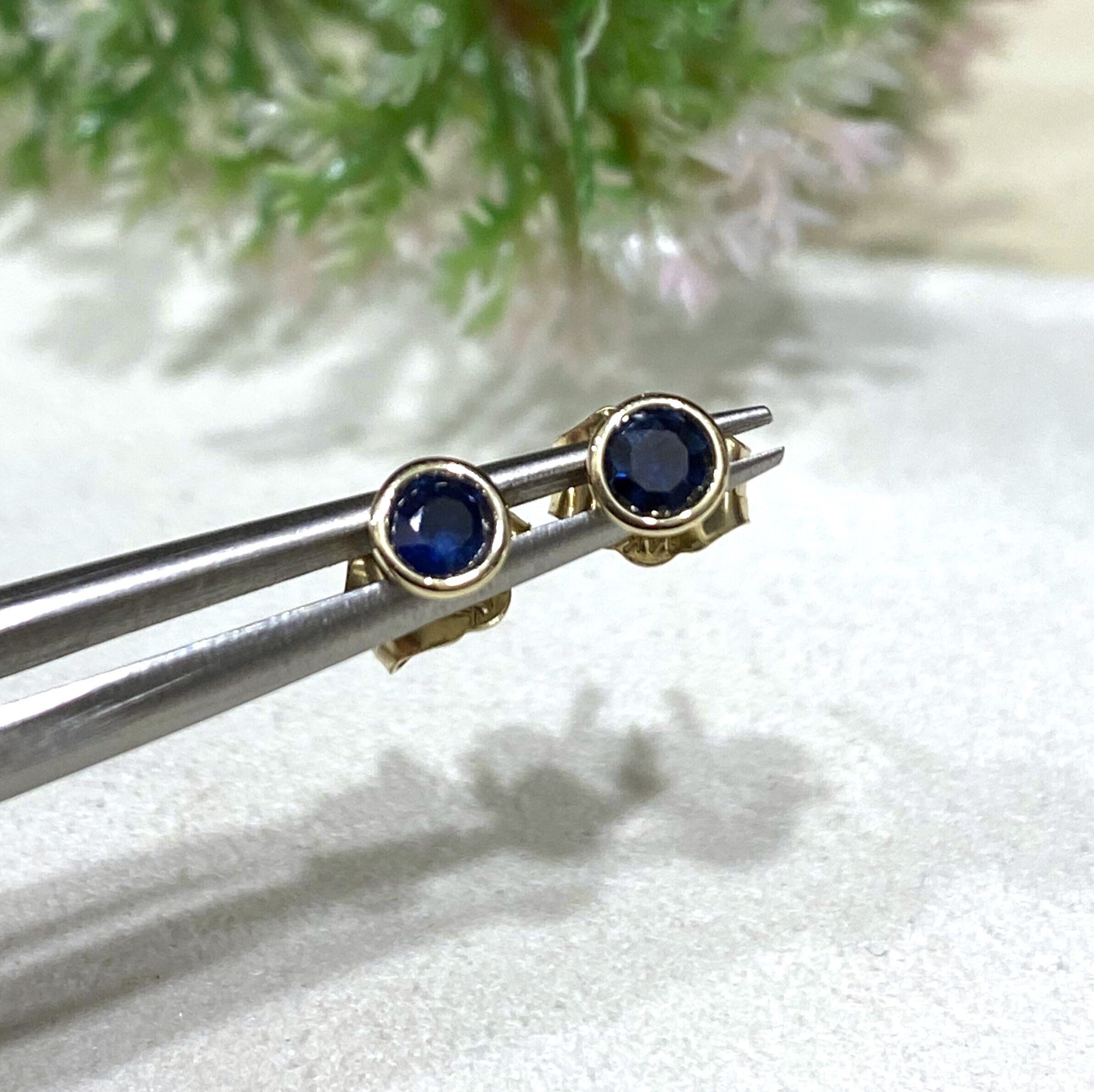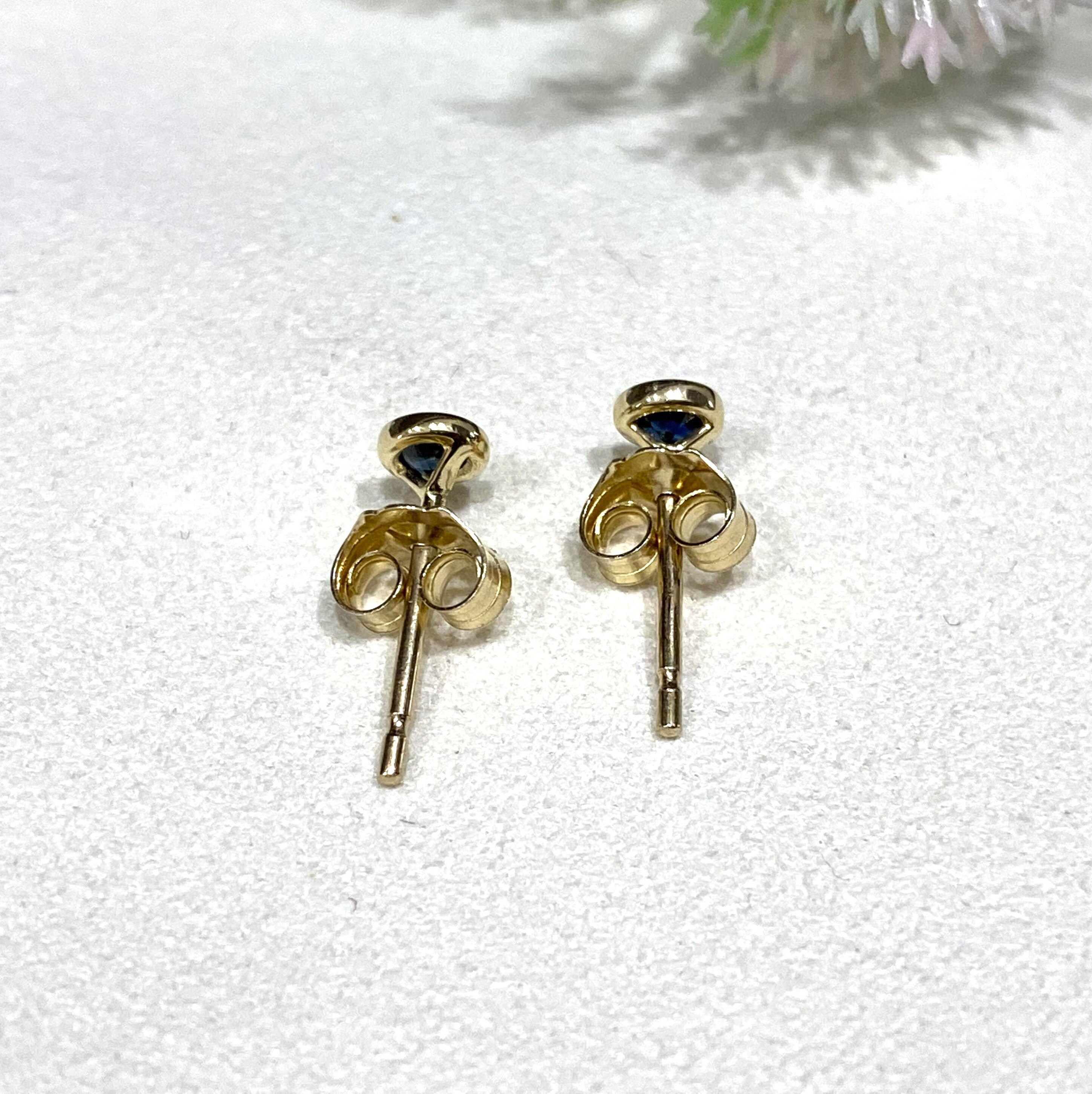 Vintage 14K Solid Yellow Gold Genuine Blue Sapphire Earrings...Marked 14K...Total of weights 0.6gr...Measure of Earrings 3.5MM...Measure of Sapphire 3MM....These are in very good condition.