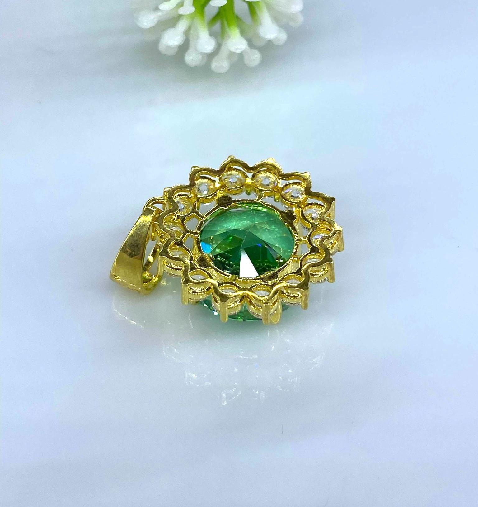 Vintage 15K 610 Solid Gold Round cut Emerald & White Topaz Pendant.