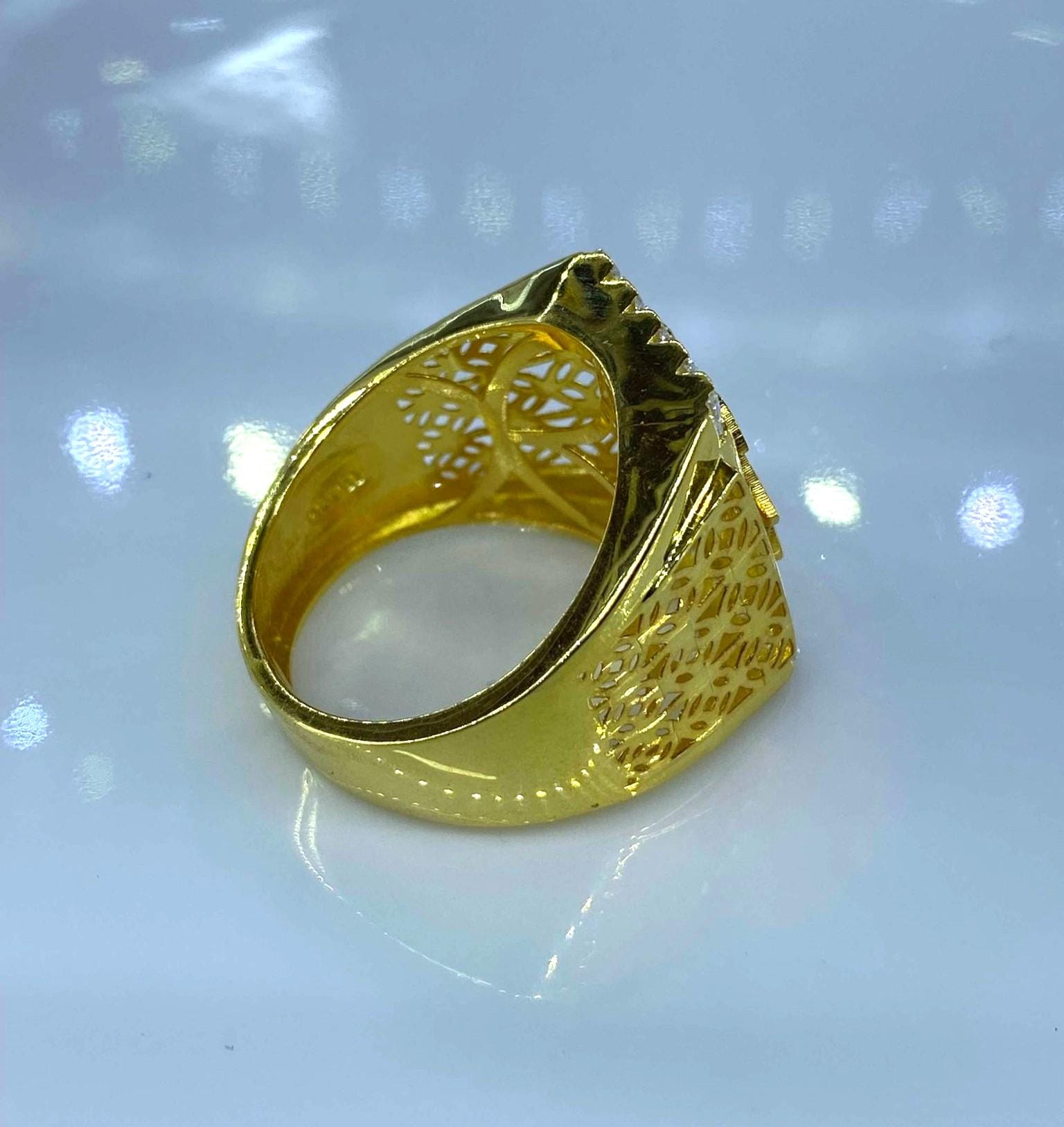 Vintage 15K 610 Yellow Gold Chinese Letters LUCK White Topaz Men's Ring Size 10.25