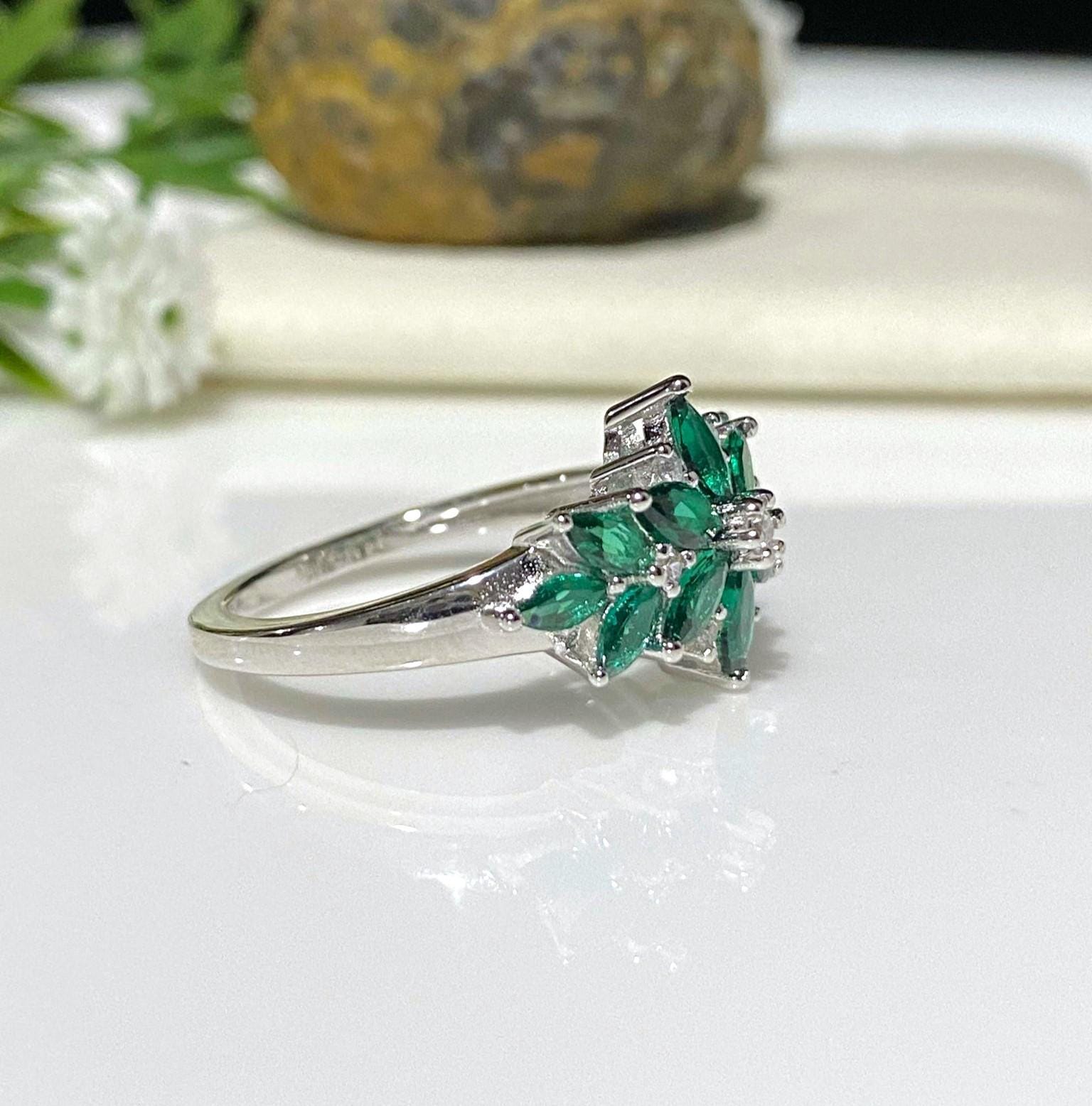 Vintage Sterling Silver Emerald & White Topaz Ring