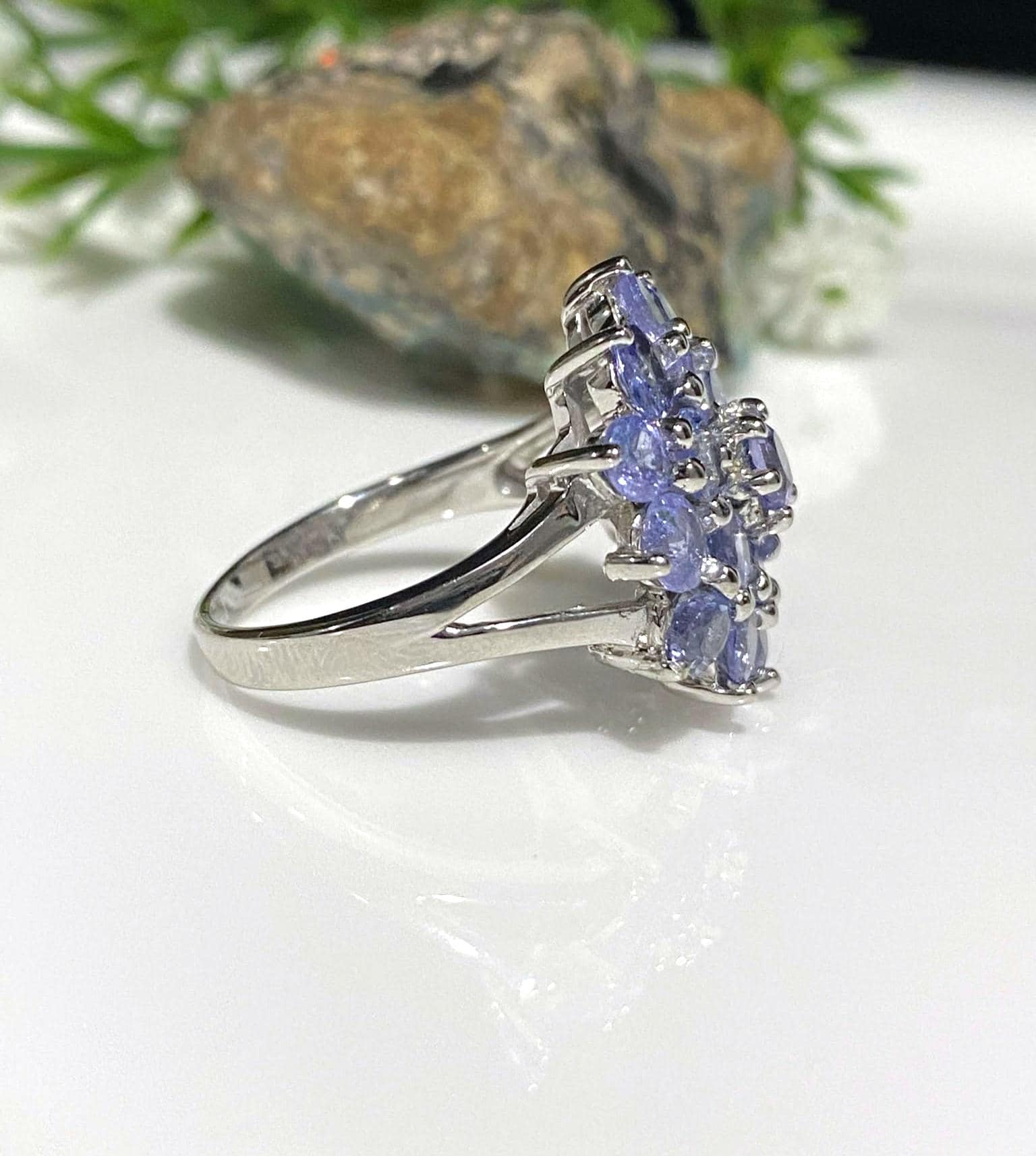 Vintage Sterling Silver Natural Round cut Tanzanite Cluster ring.... Marked 925...Total of weights 6.0grams.. Size 8.75....Measure of Face 20.4MM....It's in very good condition.