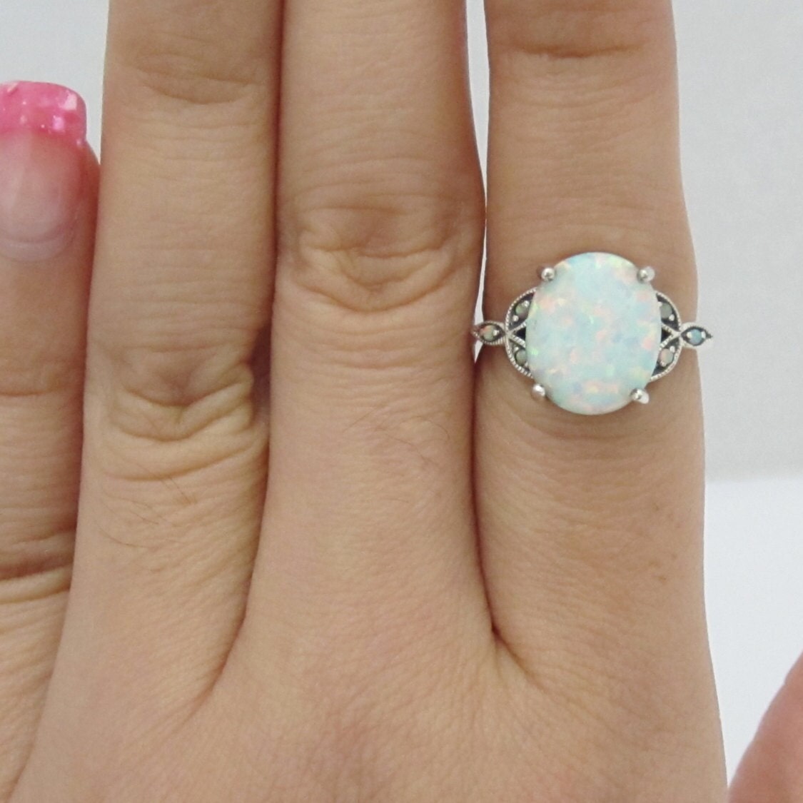 Vintage Sterling Silver White Opal Ring...Marked 925...Total of weights 2.5grams...Size 10...Measure of stone center 12 x 10MM...It's in very good condition.