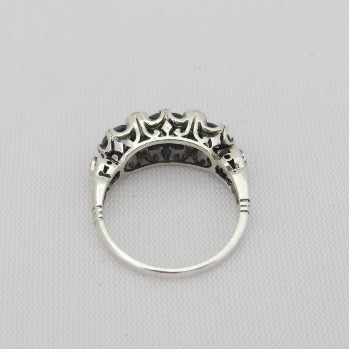 Vintage Sterling Silver Aquamarine & Seed Pearl Ring ....Marked 925...Total of weights 2.9grams...Size 9...Measure of Face 6.5MM...It's in very good condition.