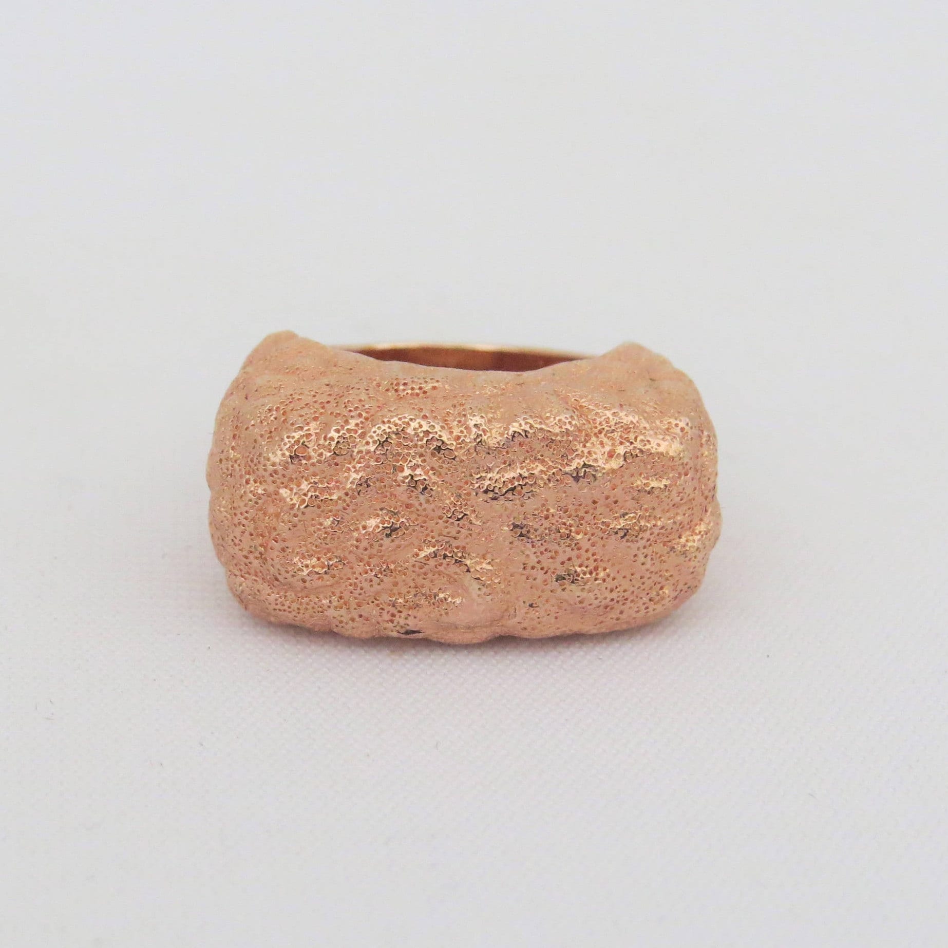 Vintage Sterling Silver Rose Gold Plated Hammed Fancy Dome Ring ...Marked 925...Weights 8.9grams...Size 6...Measure of Face 12.8MM...It's in very good condition.