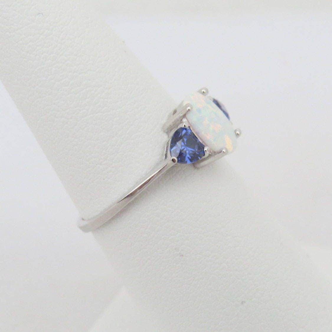 Vintage Sterling Silver White Opal & Tanzanite Ring...Marked 925...Total of weights 1.6grams... Size 9...Measure of stone center 7 x 5MM....It's in very good condition.