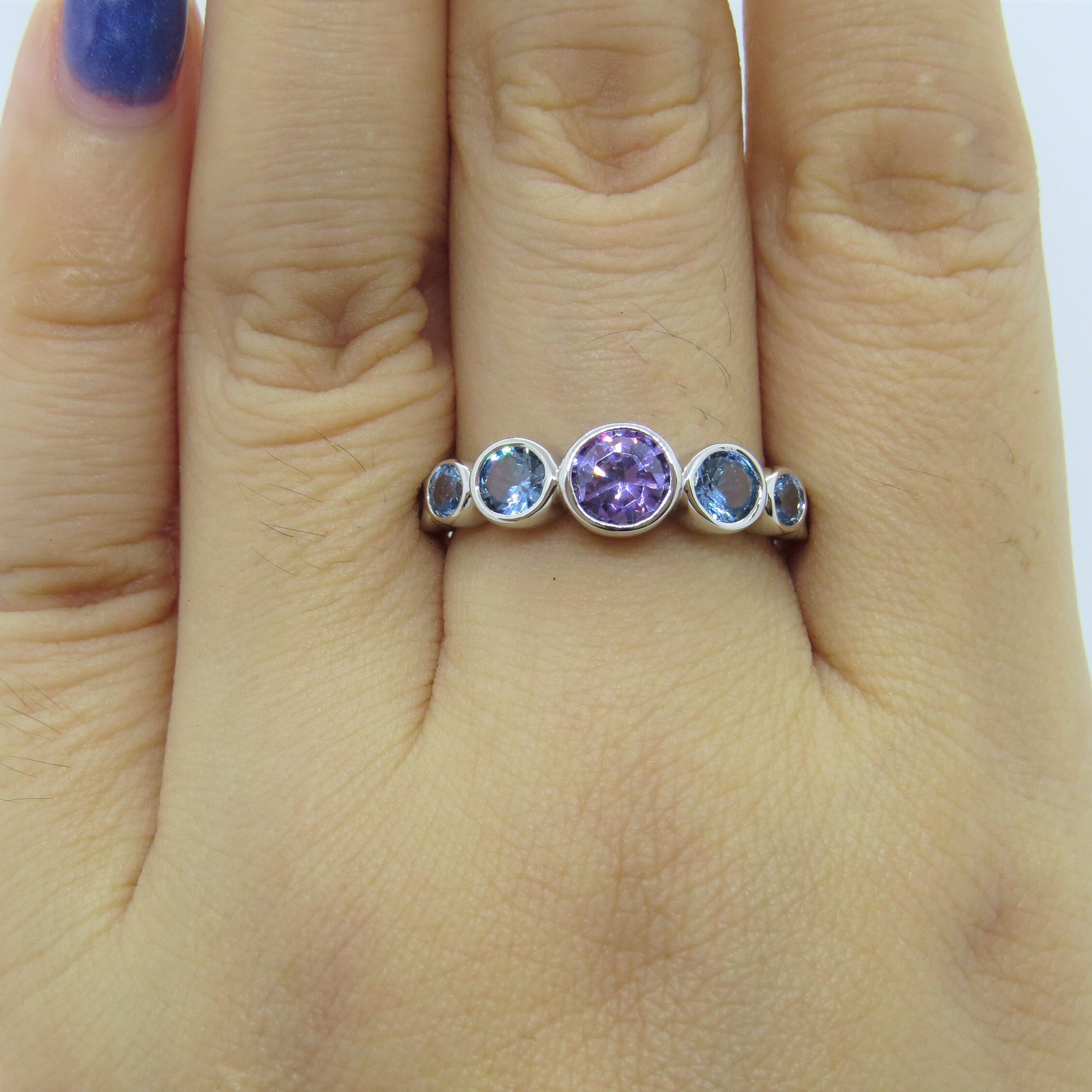 Vintage Sterling Silver Aquamarine & Amethyst Band Ring...Marked 925...Total of weights 2.8grams......Measure of Face 6.1MM...It's in very good condition.