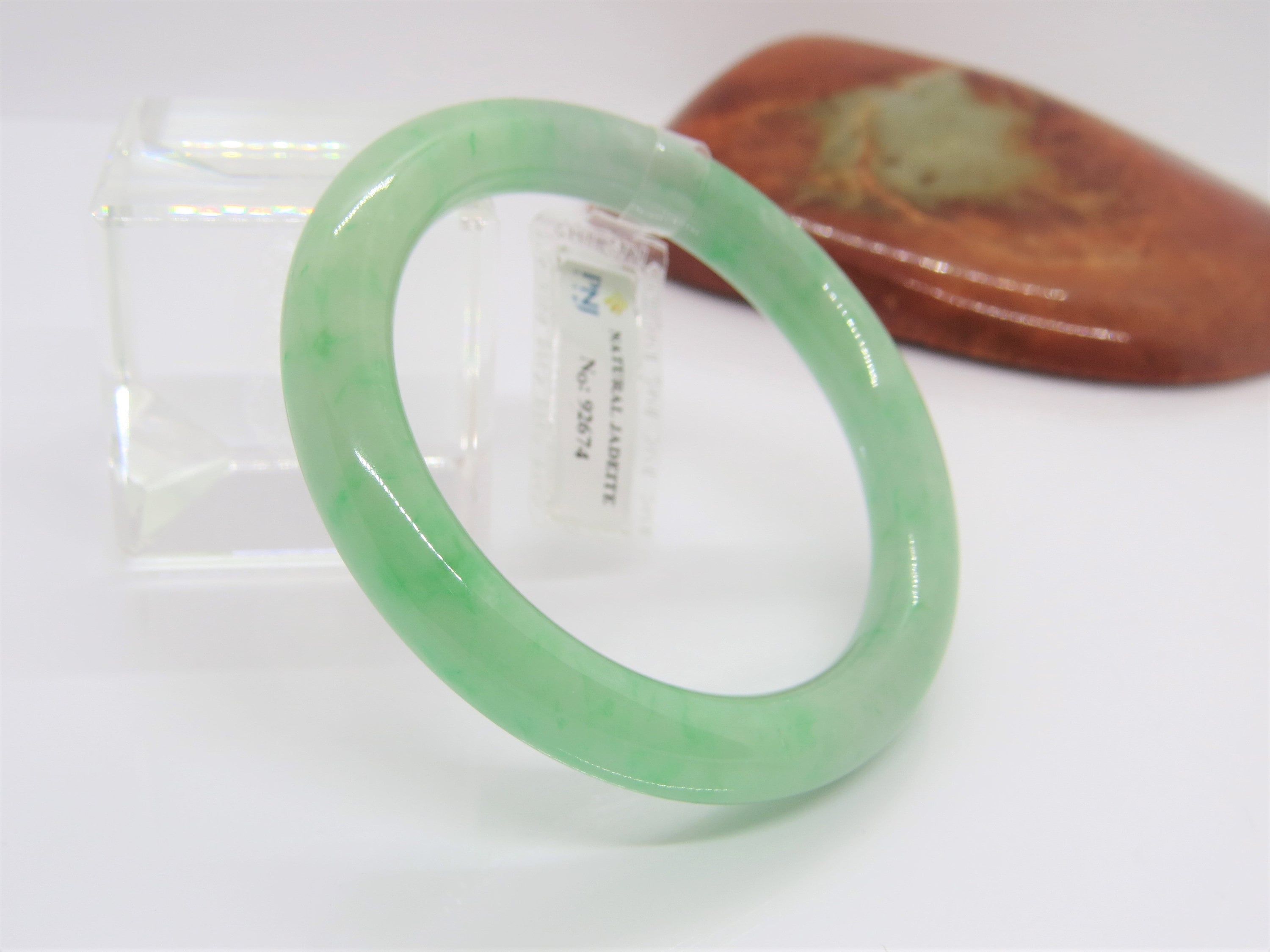 Vintage Translucent Natural Green White Jadeite Jade Bangle Bracelet 55.4MM