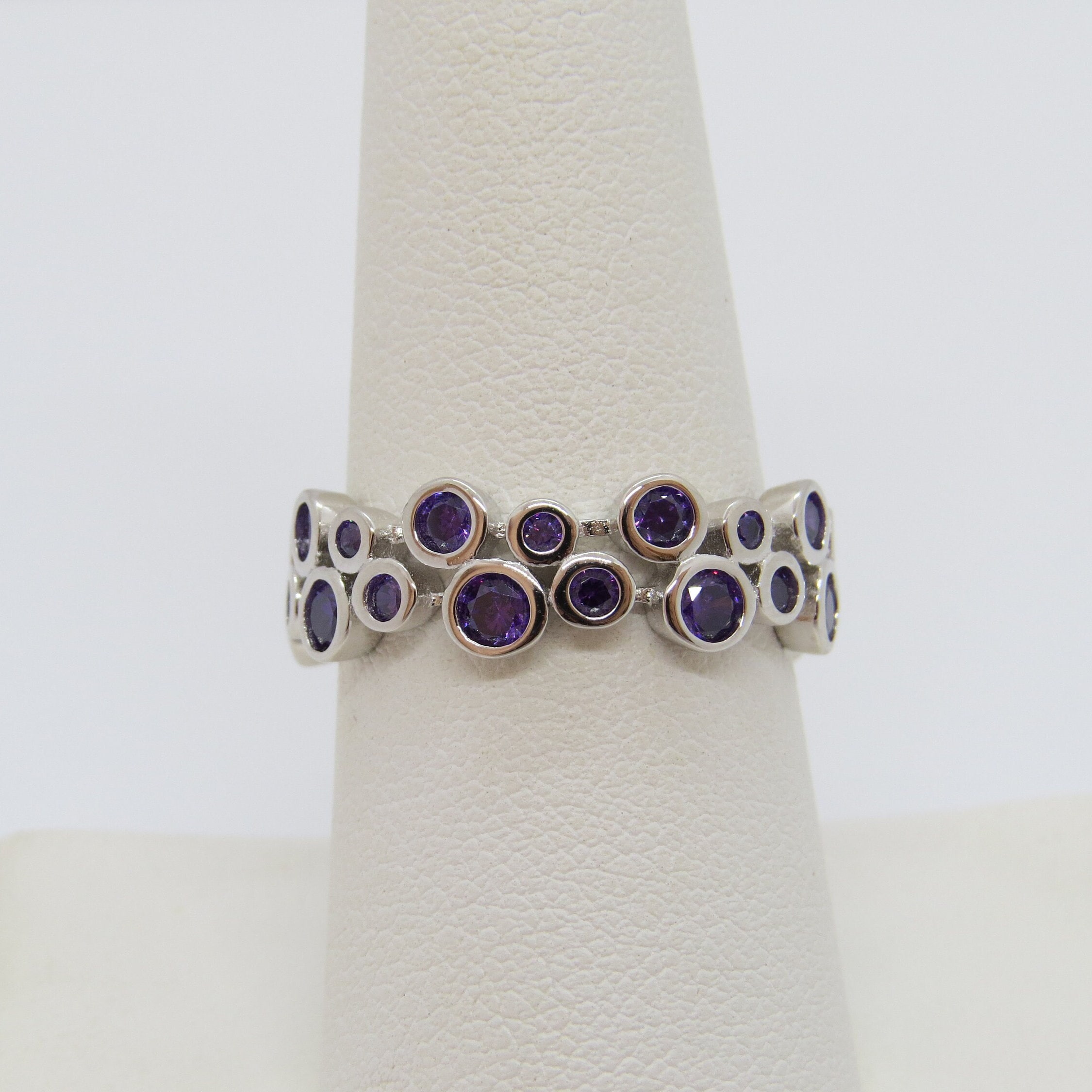 Vintage Sterling Silver Round cut Amethyst Wedding Band Ring...Marked 925...Total of weights 4.4grams... ...Measure of Band 7.6MM...It's in very good condition.