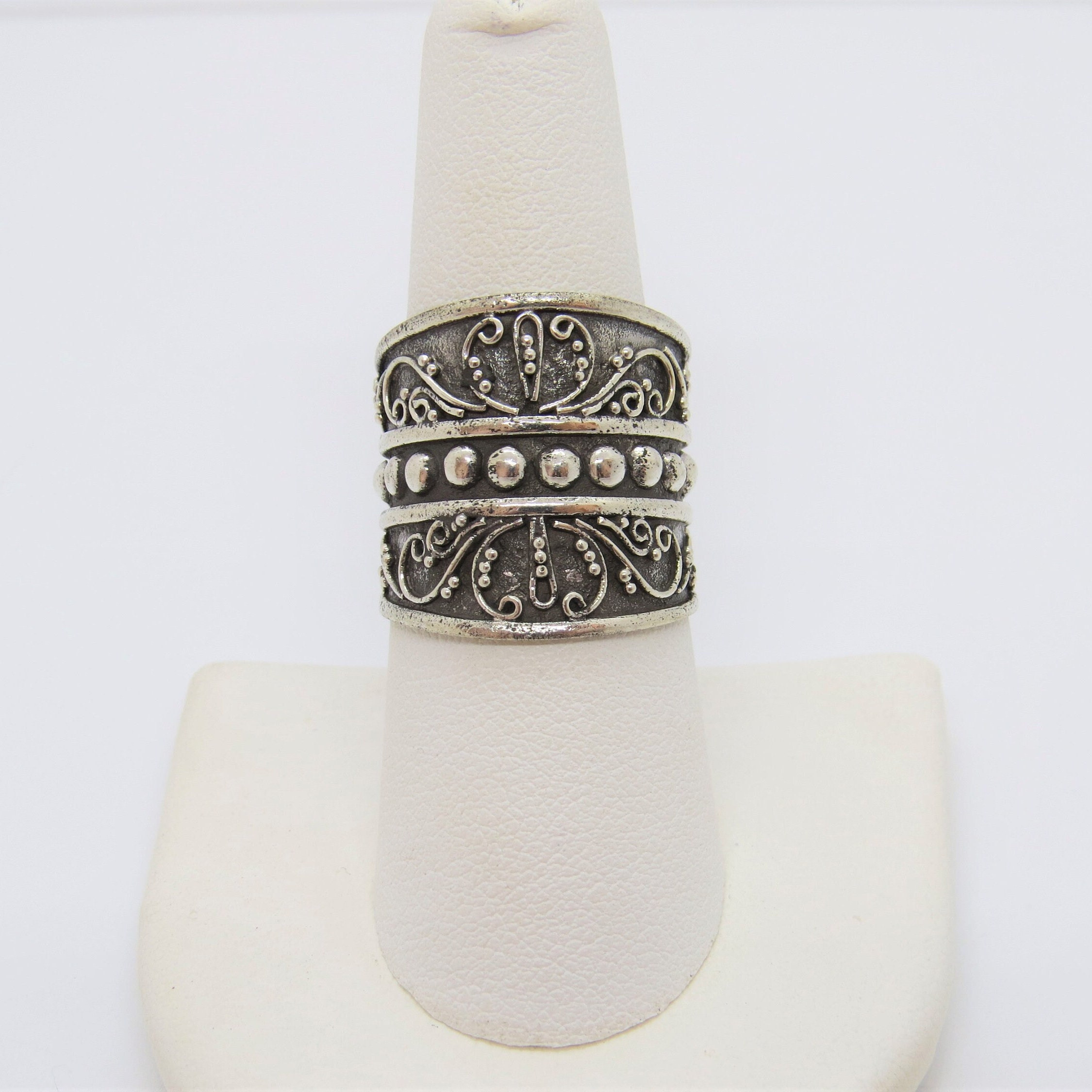 Sterling Silver Dots Band Ring ...Marked 925...Total of weights 5.4grams...Size 11...Measure of Face 21.1MM...It's in very good condition.
