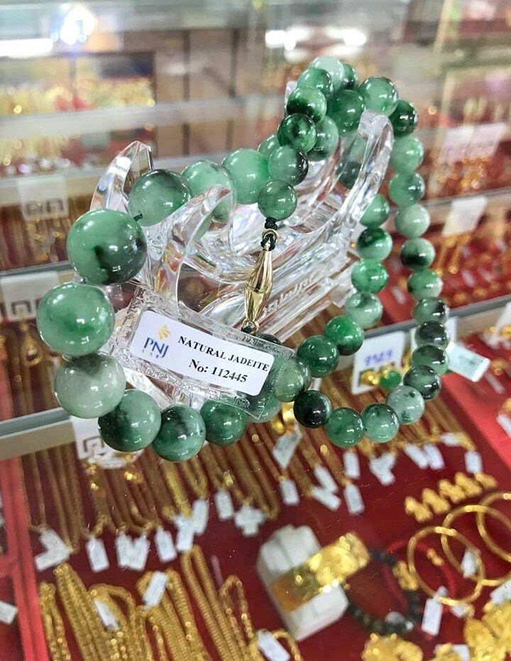 Vintage 18K Yellow Gold Translucent Natural Floral Green, White Jadeite Jade Bead Necklace 21''