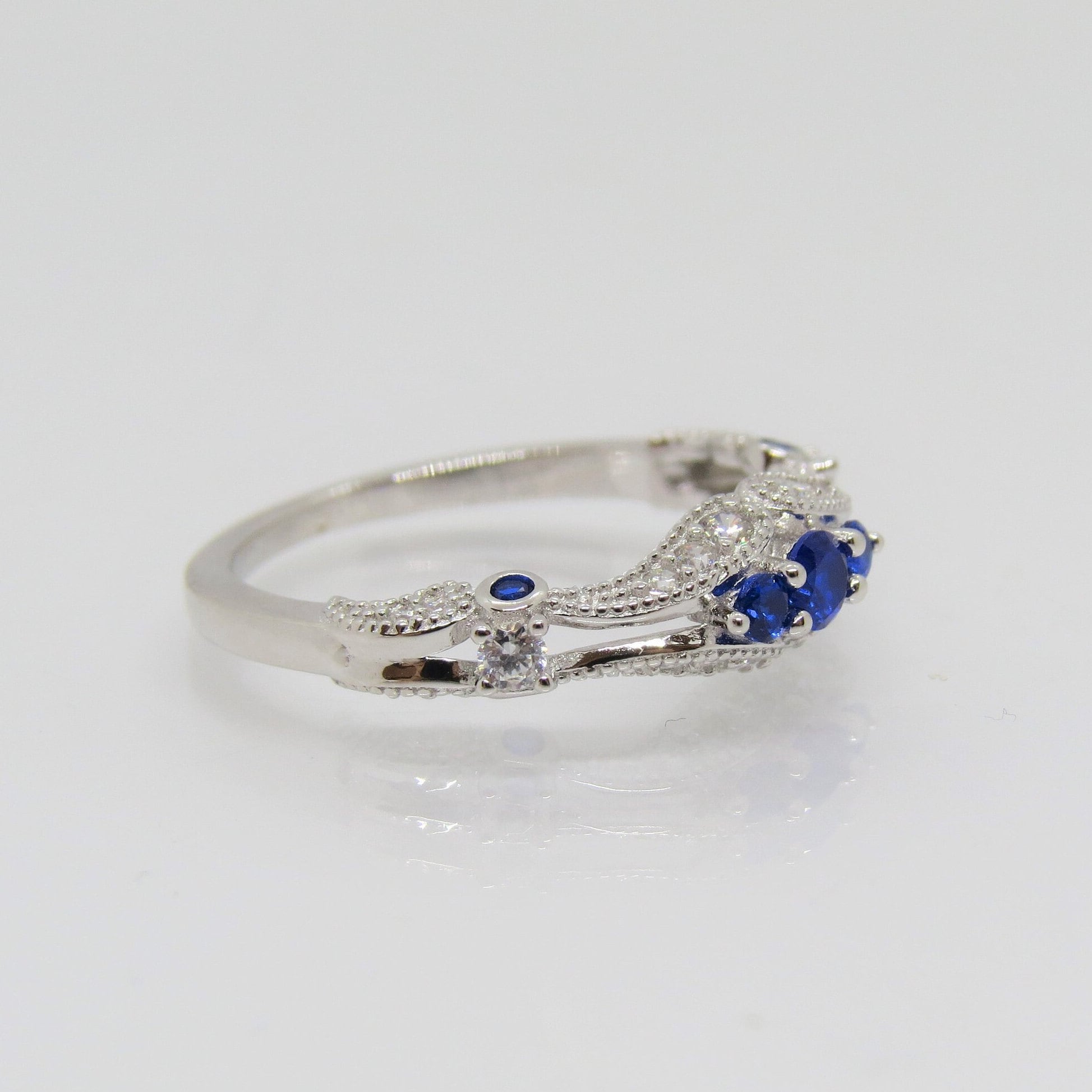 Vintage Sterling Silver Blue Sapphire & White Topaz Ring...Marked 925...Total of weights 2.5grams... Size 9...Measure of face 5.9MM...It's in very good condition.
