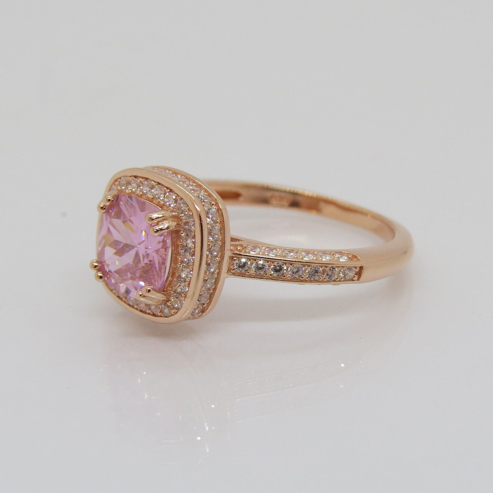 Vintage Sterling Silver Rose Gold Plated Pink Sapphire & White Topaz Ring Size 8