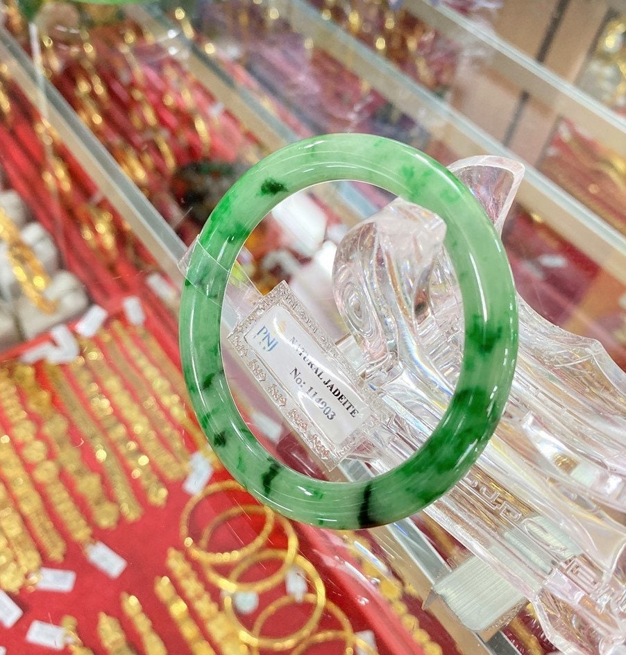 Translucent Natural Green, Black Jadeite Jade Vintage Bangle Bracelet 54.9MM