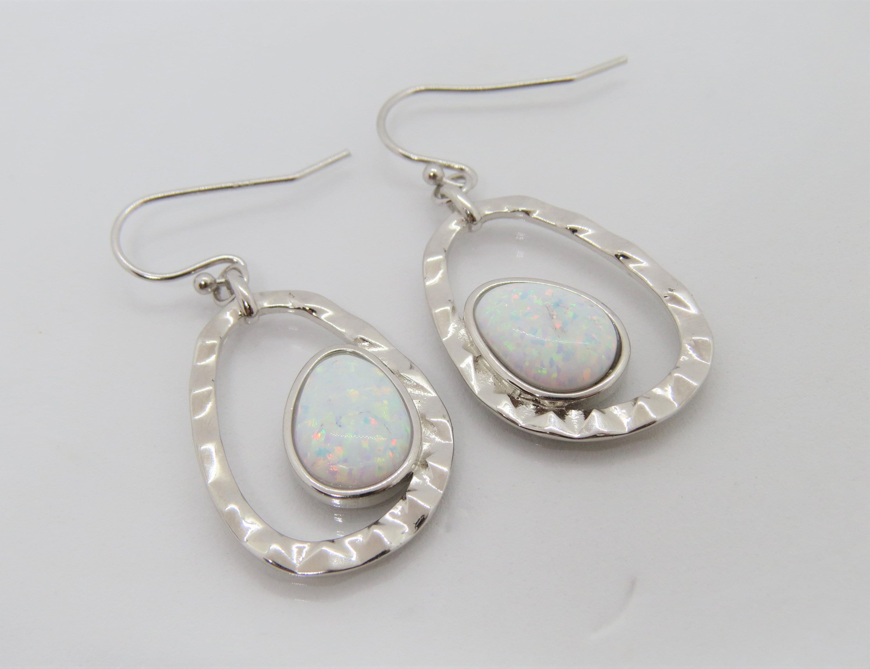 Vintage Sterling Silver White Opal Hammered Dangle Earrings...Marked 925...Total of weights 6.9grams...Measure H 1 5/8'' W 6/8''...These are in very good condition.