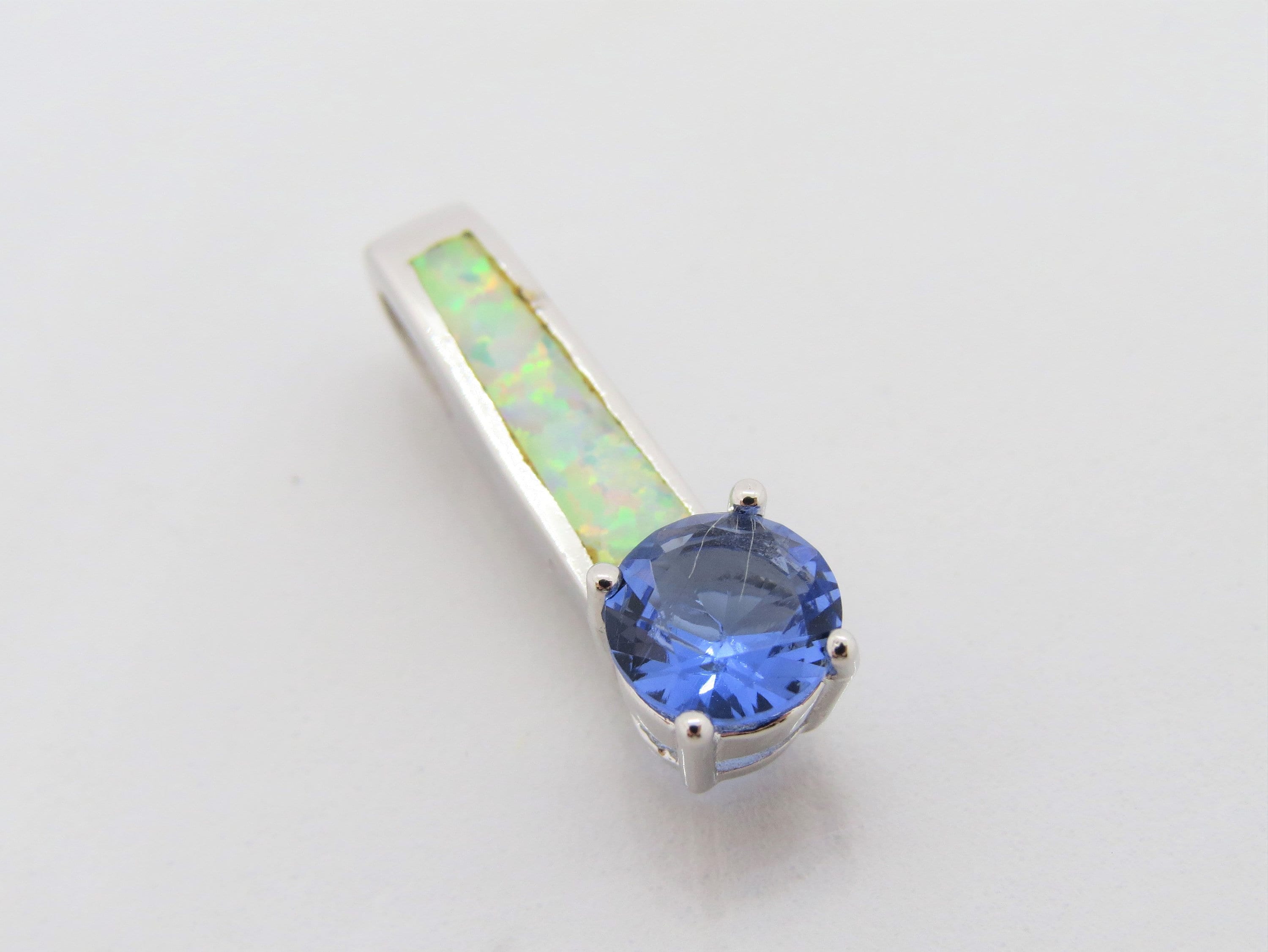 Vintage Sterling Silver Tanzanite & White Opal Pendant...Marked 925...Total of weights 3.4grams...Measure H 7/8'' W 2/8''...It's in very good condition.