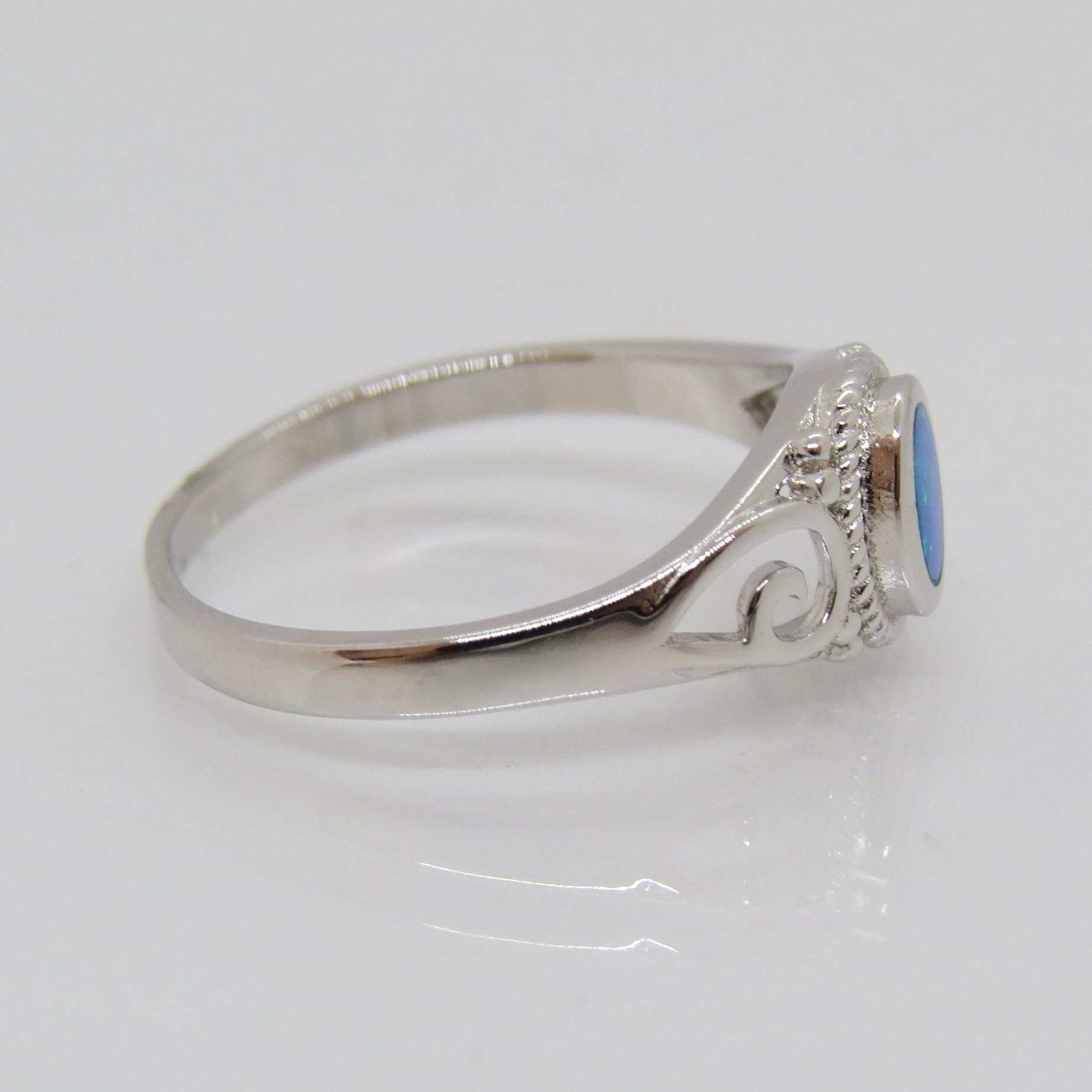 Vintage Sterling Silver Blue Opal Filigree Ring ...Marked 925...Total of weights 1.9grams...Size 7...Measure of Face 7.9MM...It's in very good condition.