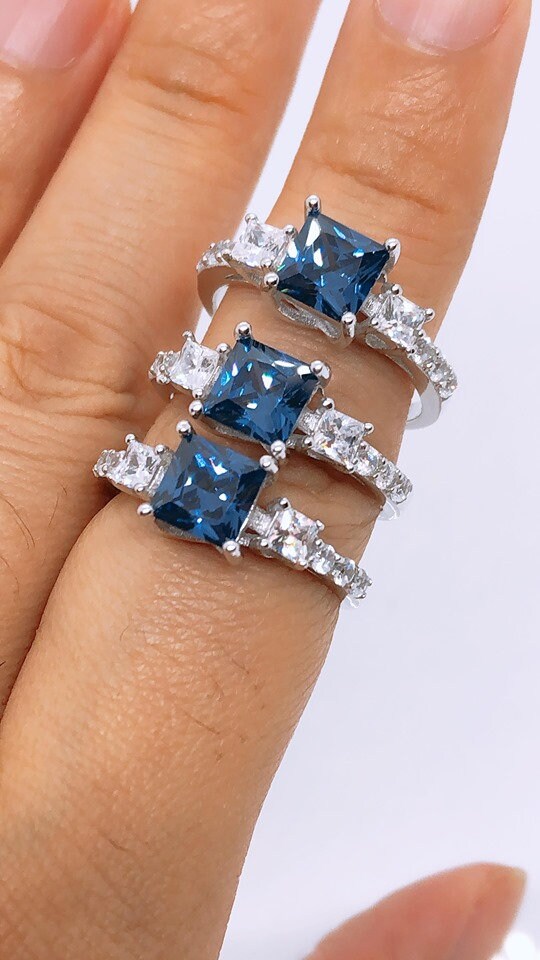 Vintage Sterling Silver Princess Tanzanite & White Topaz Engagement Ring ...Marked 925...Total of weights 2.8grams...Size 5...Measure of stone center 5.9MM...It's in very good condition.