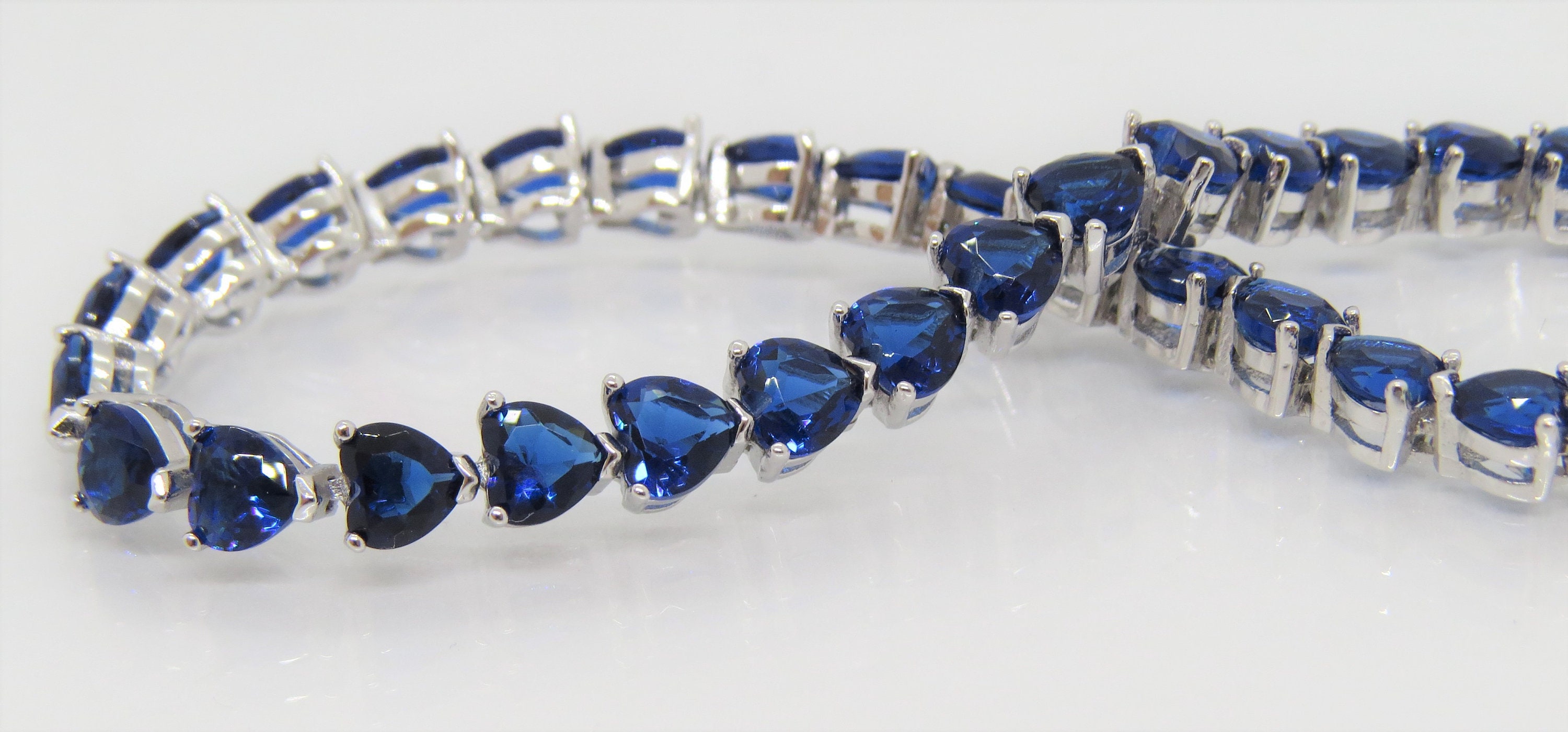 Vintage Sterling Silver Heart-Cut Blue Sapphire Link Bracelet