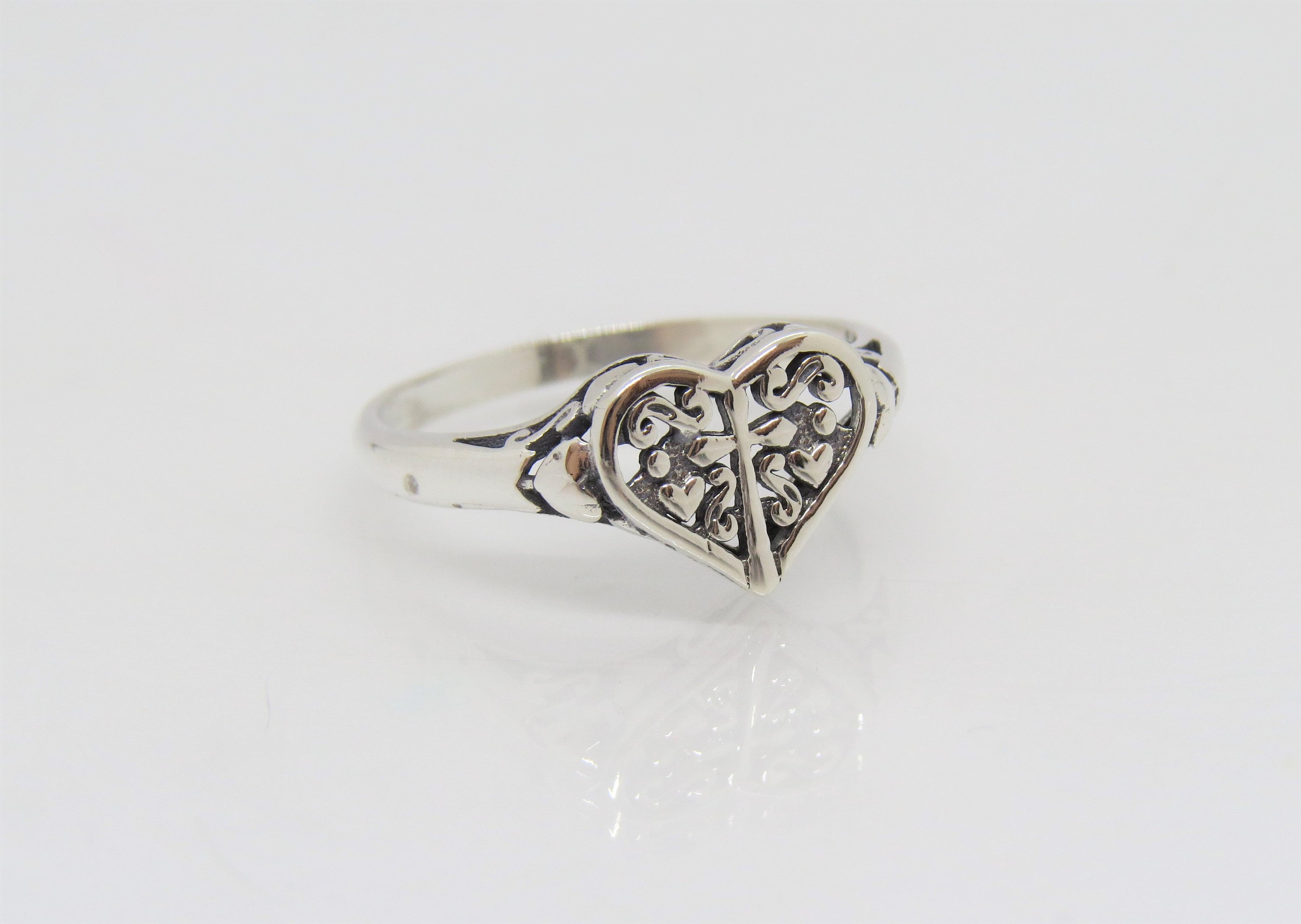 Vintage Sterling Silver Cross Heart Filigree Ring ...Marked 925...Total of weights 2.3grams...Size 9...Measure of Face 9.8MM...It's in very good condition.