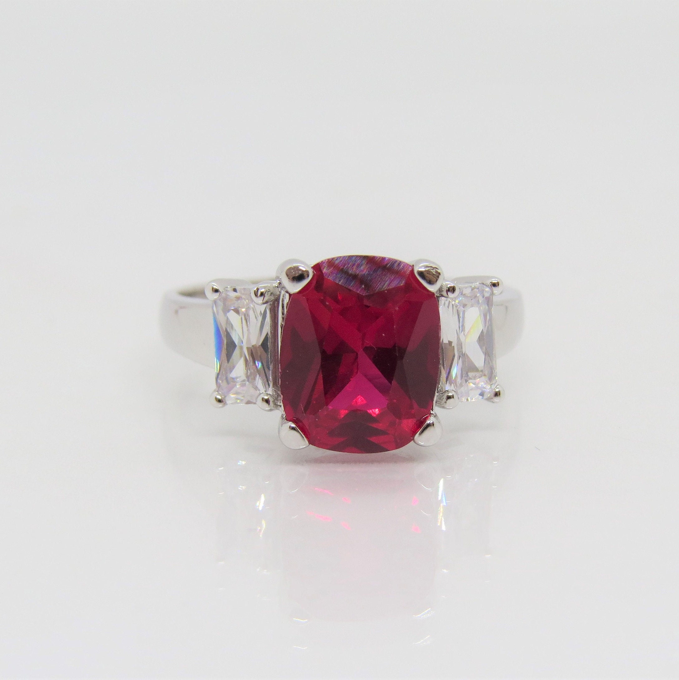 Vintage Sterling Silver Ruby & White Topaz Ring ...Marked 925...Total of weights 4.4grams........Measure of stone center 10 x8MM...It's in very good condition.