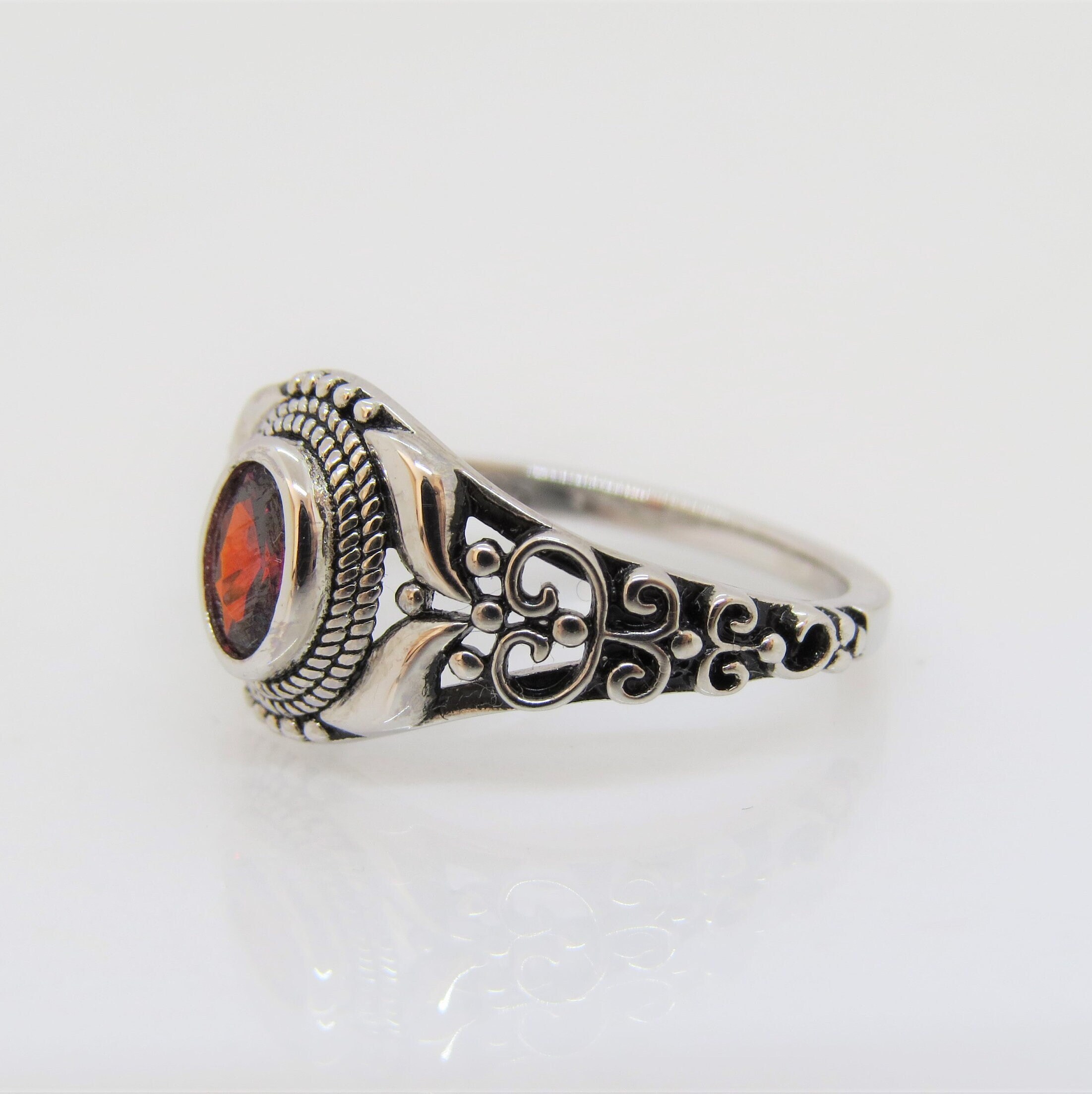 Sterling Silver Oval Garnet Filigree Ring...Marked 925...Total of weights 2.4grams... ...Measure of Face 10.5MM...It's in very good condition.